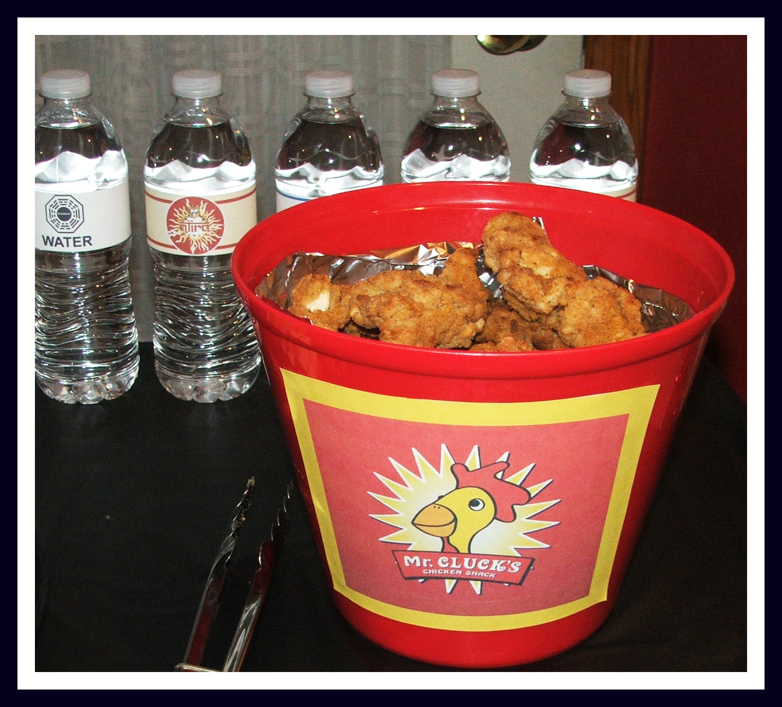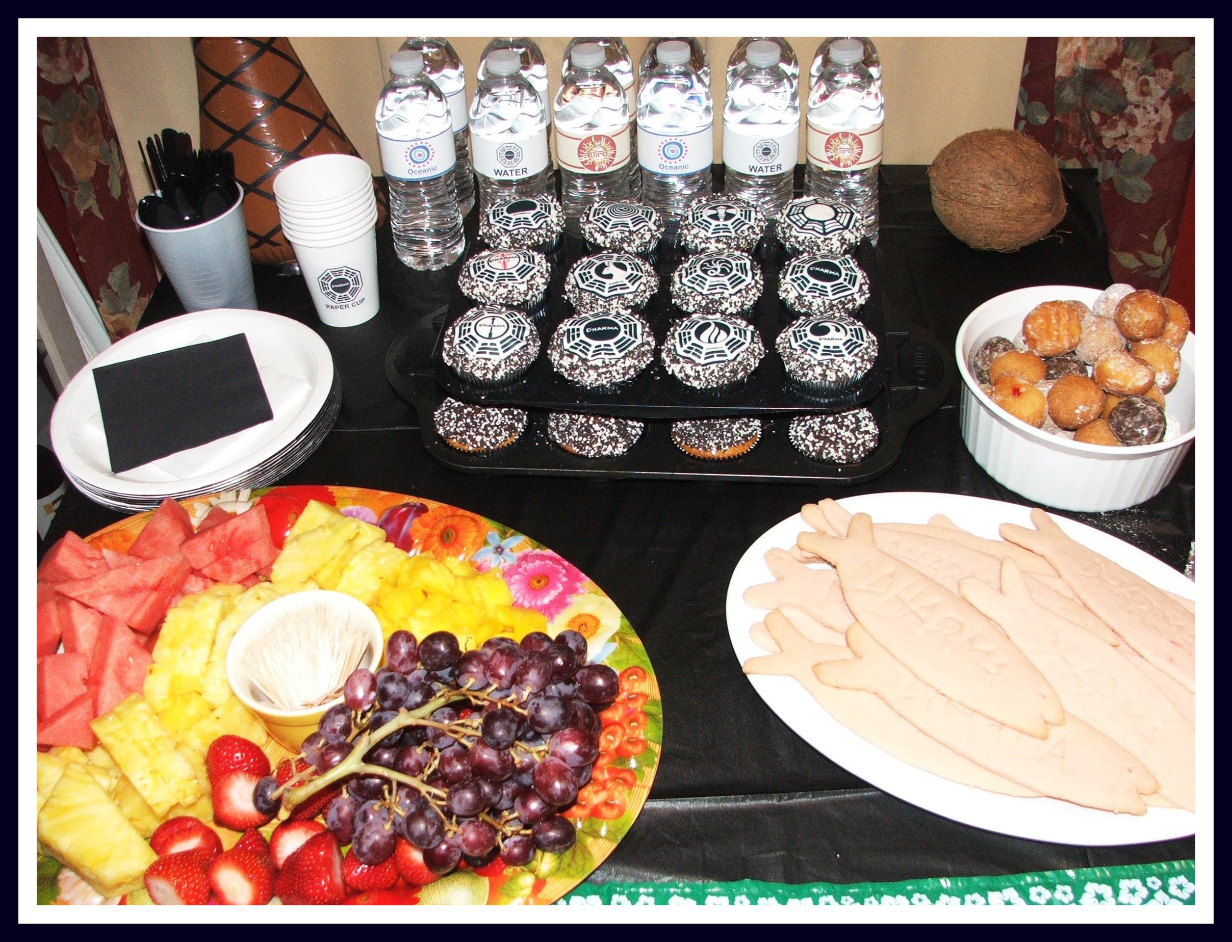 Here are some of the items I had at the party. I held back on my ideas since it was a small get together. I was originally going to have make shift tents over the food tables like the Losties built on the beach. I was going scatter suitcases and clothes around as well have tiki torches outside of the door with a “QUARANTINE” sign on the front door…..but…..sigh….I didn’t.
