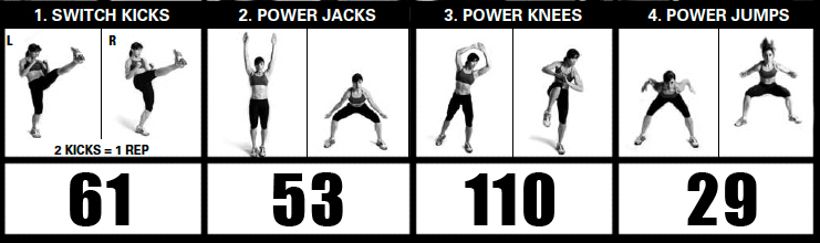 I’m very pleased with my improvement in only 2 short weeks. I was a little upset during Low Plank Obliques because my arms became tired before my legs or obliques did and I could have went longer. Also Power Jumps followed by Globe Jumps are just sheer torture. I know I could do more Suicide Jumps if I wasn’t coming right off the previous two.
